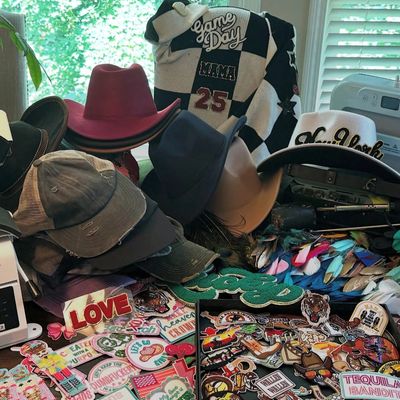 bluehazel Love has all the inventory, embellishments and tools to make all your fashion wishes come true! Hat and clothing embellishments GONE WILD!! patches, stones, beads, chains, cards, feathers, trinkets, leather strings and cutouts, fire, branding irons and more!! What catches your eye??